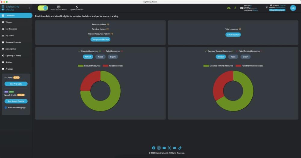 Lightning Assist is a desktop text expander that reduces repetitive typing and streamlines workflows across email, documents, chat, and code. You get instant text expansion via hotkeys, AI-powered resource generation and in-place editing, and optional push-to-talk speech-to-text—all within your existing applications.